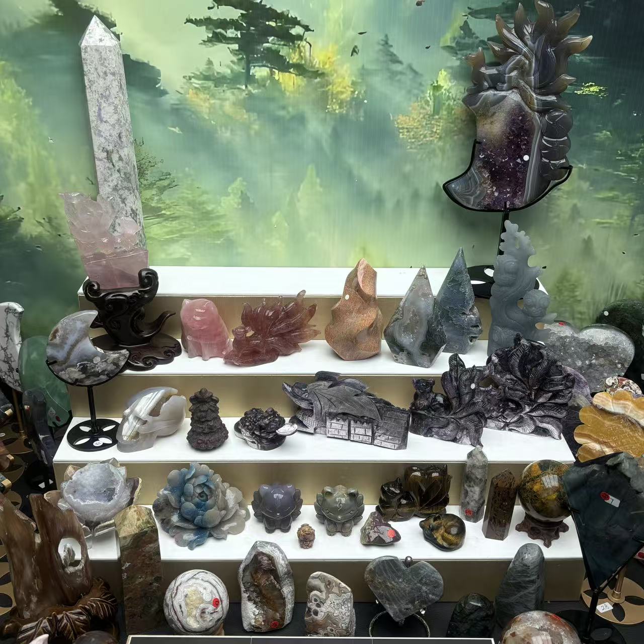 Shape Characteristics: Crystal carvings are crafted by artisans and come in various shapes, commonly including animals, deities, and other figures.